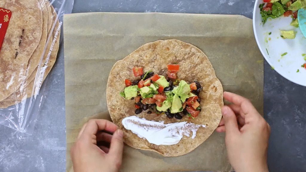 I love this recipe because it’s the perfect mix: creamy avocado balances the smoky beans, the fresh veggies add crunch, and the tortilla ties it all together.