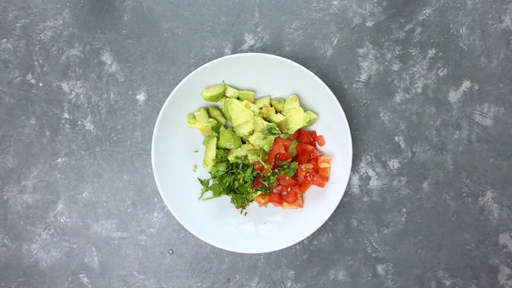 Cut the avocado in half, scoop it out, and mash it in a bowl with a pinch of salt and a squeeze of lime juice.