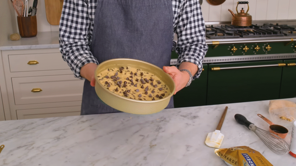 Imagine the best cookie you’ve ever had, just baked in a big round pan and sliced like a cake. It looks impressive, but it’s actually easier than baking a batch of cookies.