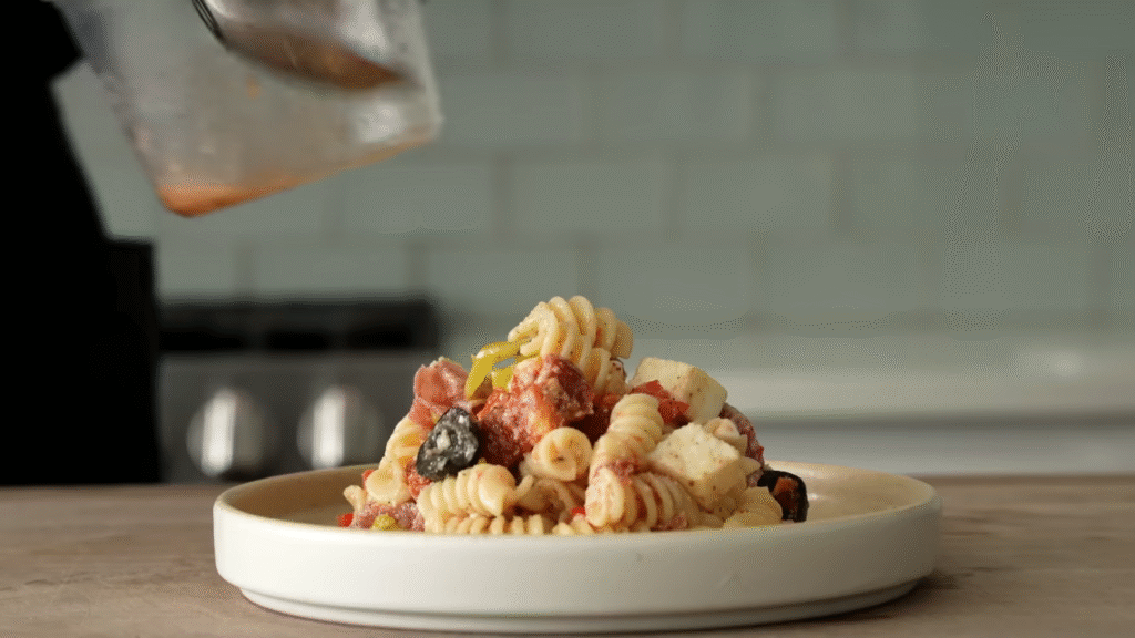 This pasta salad is not just food—it’s a smart choice. It stays fresh in the fridge for 2–3 days. You can make it ahead of time for school, office lunch, or even a picnic.