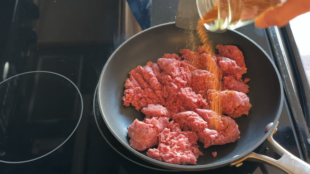 - Add your taco meat on top for that warm, seasoned flavor.
