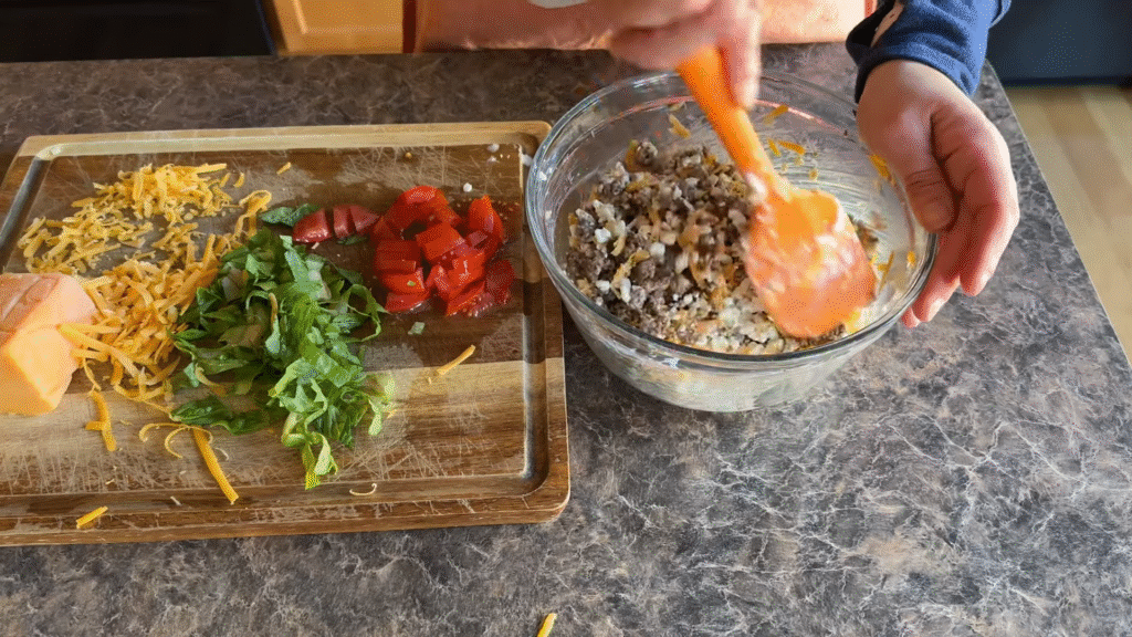 - Cooked taco meat (ground beef, turkey, or chicken) – seasoned with taco spices.