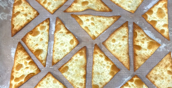 I usually fry up some wonton wrappers into chips, but honestly, crackers or tortilla chips work just as well.