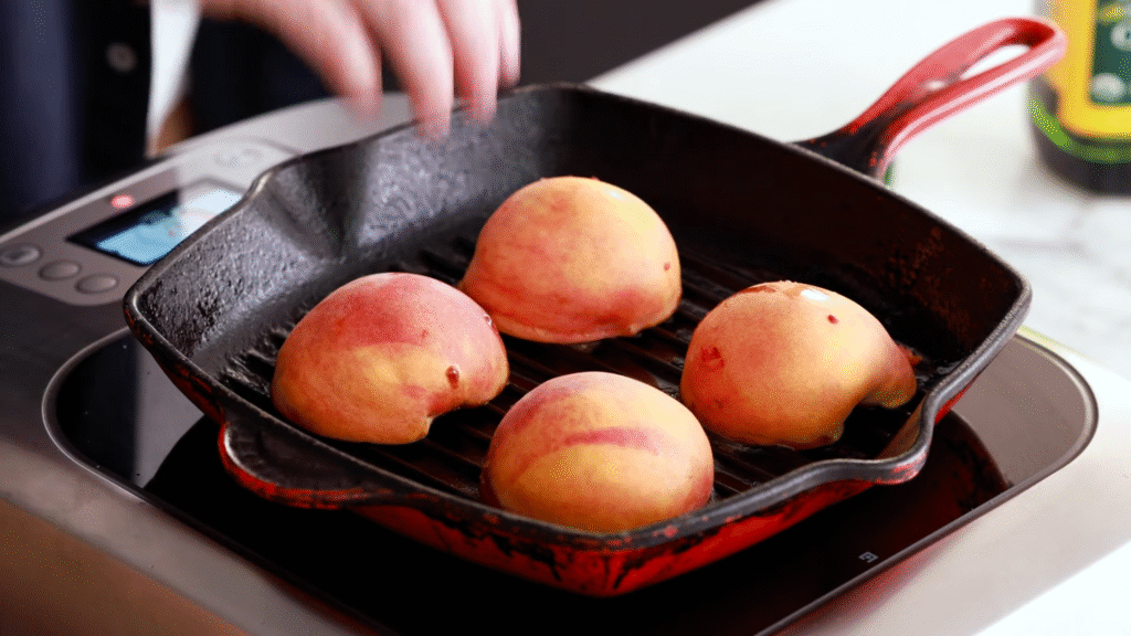 - Let them cook for 3–4 minutes until you see grill marks and the fruit gets softer.