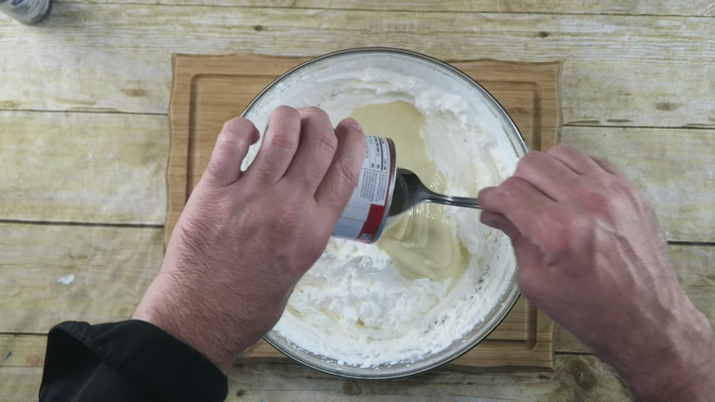 If you have an ice cream maker, pour the chilled mixture in and let it churn until it looks thick and creamy. If you don’t have one, don’t worry—I’ll explain the no-machine way below.