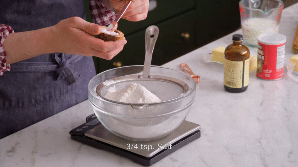 In one bowl, whisk flour, baking powder, and salt. This keeps everything light and lump-free.