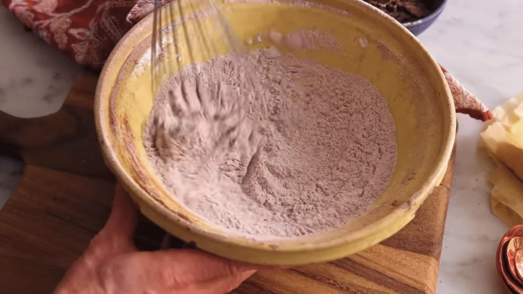 - Mix flour, cocoa powder, baking soda, and salt in another bowl.