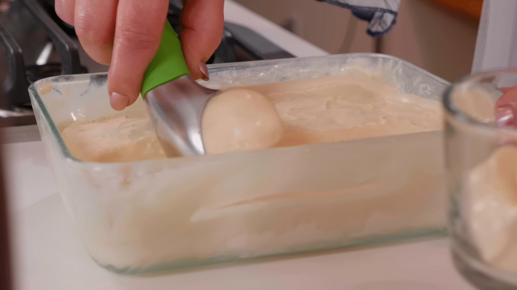 If you don’t have a machine, no worries. Pour it into a shallow dish, freeze it, and every 30 minutes, stir it with a fork. Do this 4–5 times until creamy.