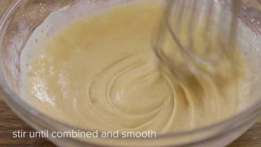 3. Add wet ingredients – Pour in the milk, melted butter, and vanilla extract. Mix until smooth and no lumps remain.