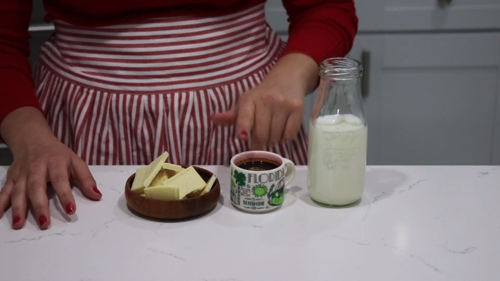 - White chocolate chips or white chocolate bar – about 3 tablespoons.